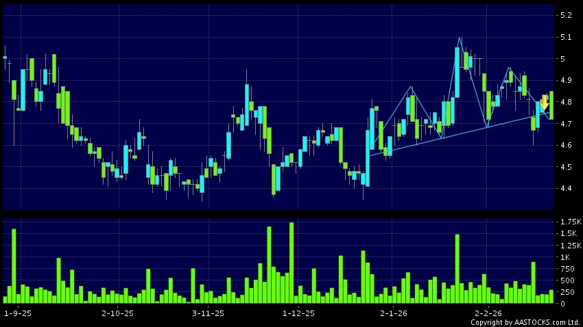 Disclaimer:The information, financial market data, quotes, charts, statistics and / or various technical analysis indicators are automatically generated based on the analyses and interpretations of publicly available information and should be used as references only at your own discretion. Such automatically generated content does not reflect the views or opinions of AASTOCKS.com Limited nor does AASTOCKS.com Limited make any guarantees to their accuracy, completeness, timeliness or correctness. You are advised to consult independent professional advice to verify pricing information or to obtain more detailed market information. Any uses of information or trades executed following the said automatically generated content are taken at your own risk for your own account.