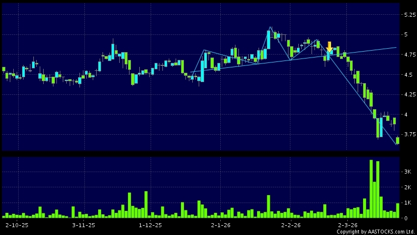 CALC(01848.HK) appears a downside breakout, dropped below the neckline. Last printed at 3.630; fell 6.443%; on volume of 957.00K shares and turnover of $3.51MRecent PerformanceIn 3...