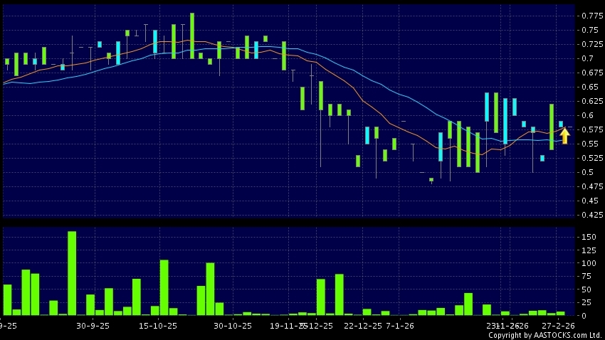 ASIARAY(01993.HK)'s SMA 10 crosses above SMA 20, which is a golden cross. Last printed at 0.580; Flattish; on volume of 0.00 shares and turnover of $0.00Recent PerformanceIn 3 days...