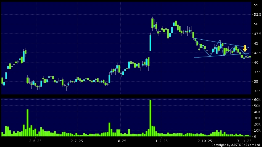 Triangle Breakout means the volatility of price movement is decreasing, stock price finally broke the bottom of triangle. A downward trend will start.(HK stocks quote is delayed for at least 15 mins.Short Selling Data as at 2025-11-06 12:25.)