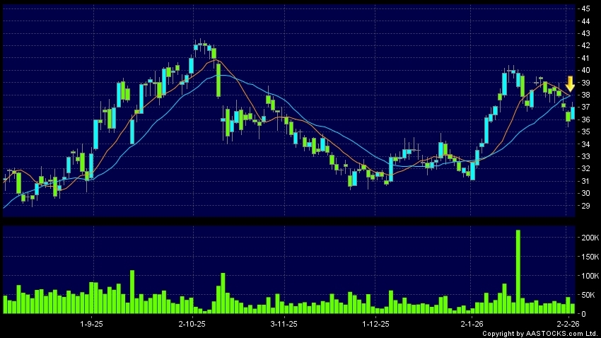死亡交叉是一個利淡信號,指股價的短期移動平均線跌穿長期移動平均線,例如50天線跌穿250天線,在圖表上構成交叉的形狀。股價通常會下跌形成一個下降趨勢,技術走勢偏軟。(港股報價延遲最少十五分鐘。沽空資料截至 2026-02-04 16:25。)