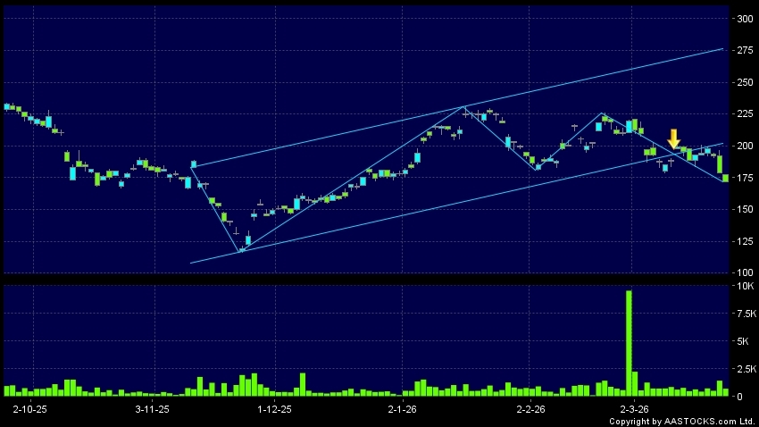 禾賽-W(02525.HK) +5.600 (+3.244%) 沽空 $4.38千萬; 比率 37.683% 呈現區域下軌突破。現價報172.100,下跌3.855%,成交量70.81萬股,成交額1.23億。