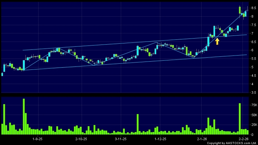 區域突破指股價在過去的一段時間只在一個範圍在內活動,然後股價上升作出突破,升穿區域的頂部,技術走勢向好。(港股報價延遲最少十五分鐘。沽空資料截至 2026-02-04 12:25。)