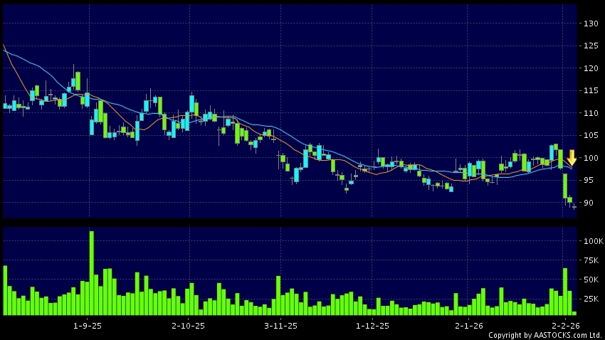 死亡交叉是一個利淡信號,指股價的短期移動平均線跌穿長期移動平均線,例如50天線跌穿250天線,在圖表上構成交叉的形狀。股價通常會下跌形成一個下降趨勢,技術走勢偏軟。(港股報價延遲最少十五分鐘。沽空資料截至 2026-02-04 12:25。)